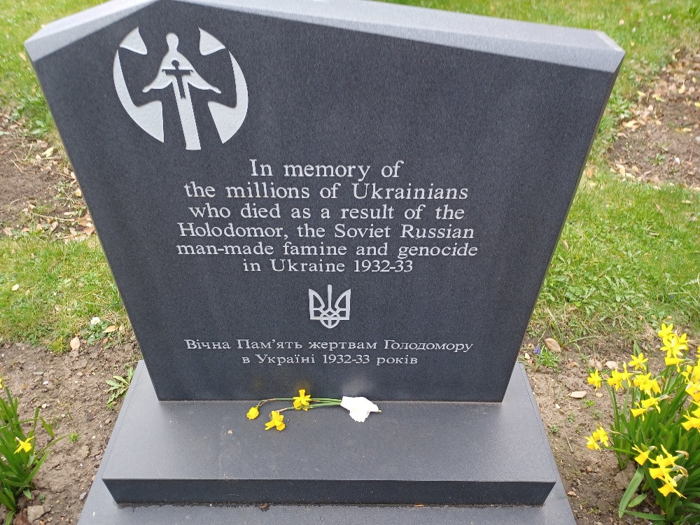 There was extra poignancy to the vigil which was close to a memorial outside the church which commemorates those lost in an earlier genocide against Ukrainians (photo below), and reads: