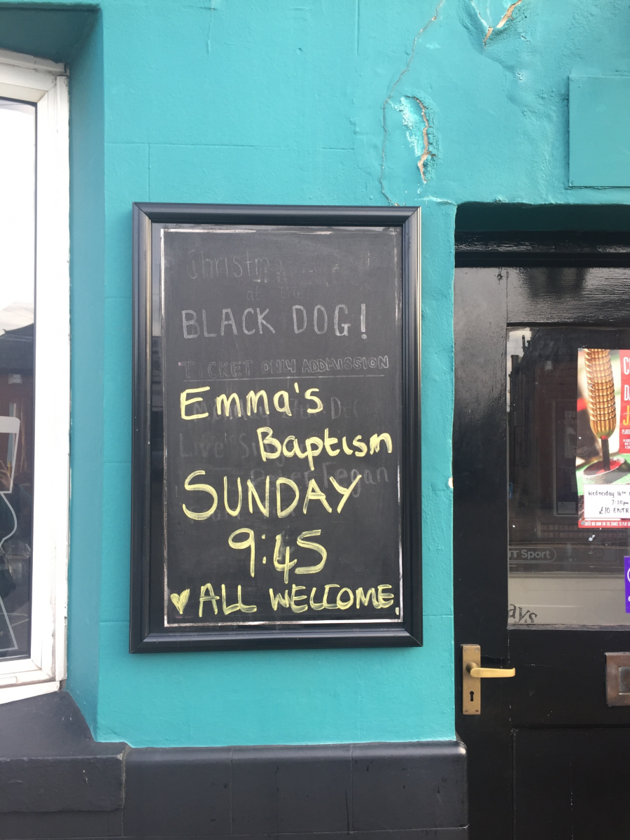 A regular at The Black Dog pub just over the road, she was supported on the day by a large group of staff and patrons. The pub even advertised the service on its outside chalkboards.