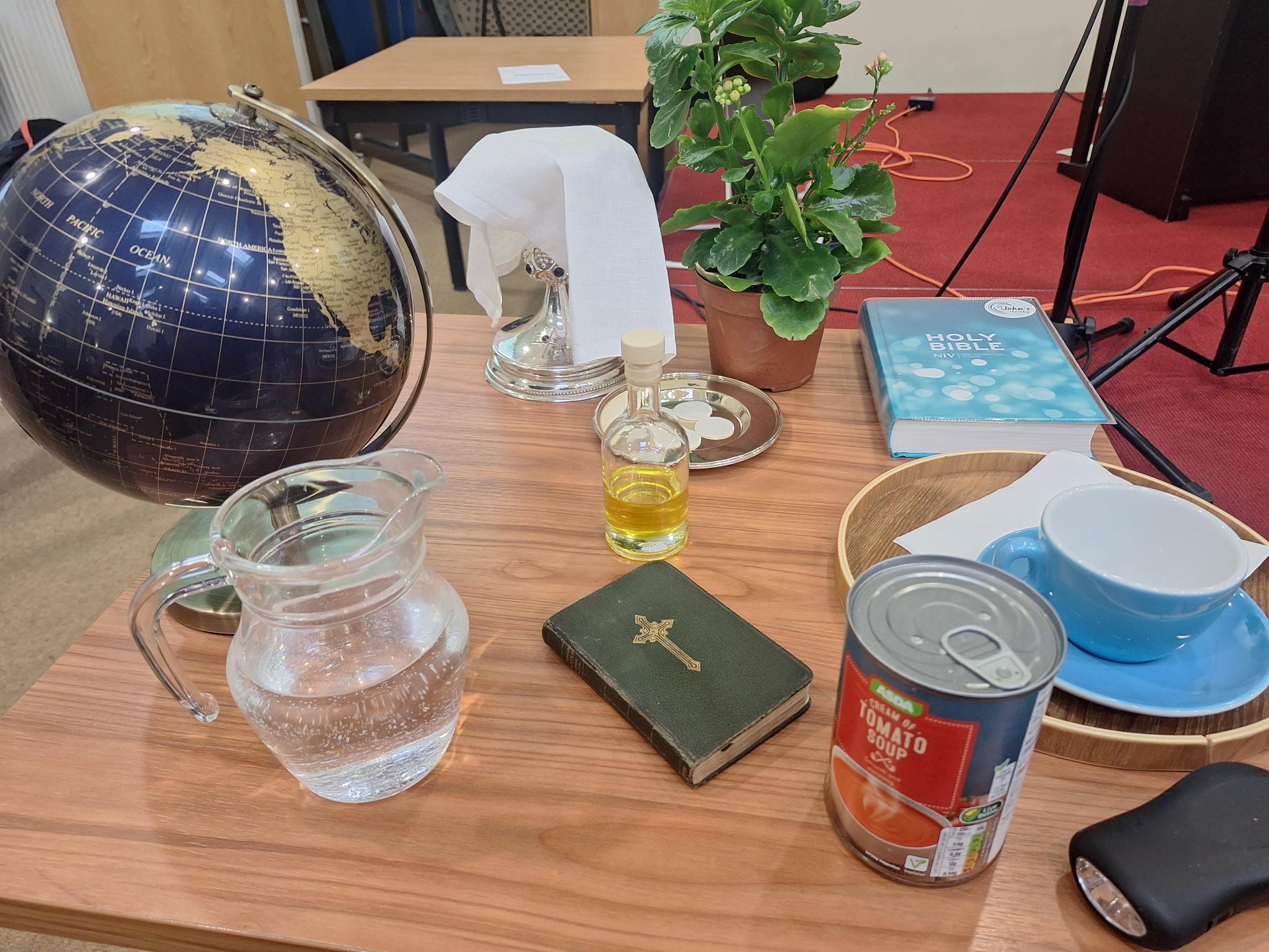 She was given water for baptism; bread and wine for the sacrament; a Bible to proclaim the Gospel; a prayer book; oil for anointing and healing; a globe and plant as a sign of our call to care for God’s beautiful and fragile creation; a tray and coffee cup, for the church to be a place of hospitality and welcome for all, and a torch and a tin of soup, for their calling at The Beacon is to feed the hungry and to be a light in the darkness.