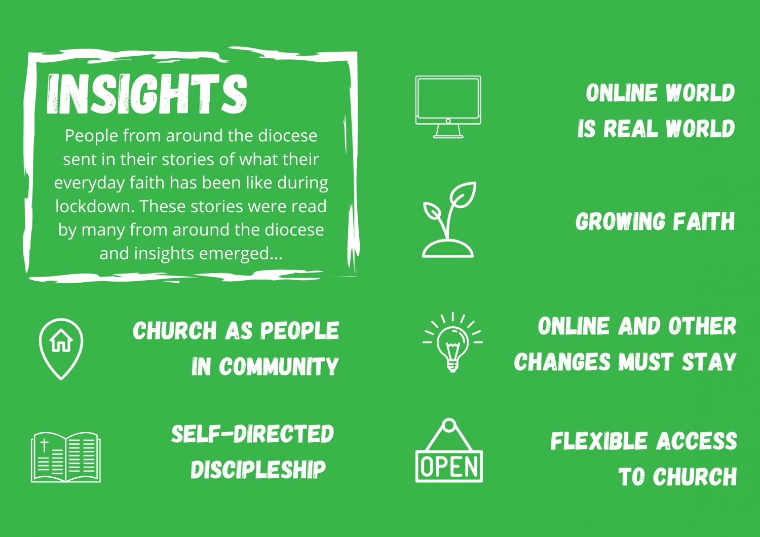 People from around the diocese sent in their stories of what their everyday faith has been like during lockdown, as part of the Shaped By God Together Process. These stories were read by many from around the diocese and insights emerged...