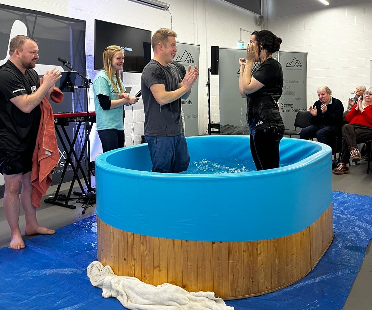 There was great joy at a recent service of Baptism at St Barnabas Grange Park in Loughborough, one of our Resourcing Church plants. Four young adults were baptized by Revd Ben Gardner with 99 people in the congregation to support them. Each shared their testimony of coming to faith, with three of them explaining that they’d been to church as children but only recently returned to faith. The service and the testimony was so inspirational that other members of the congregation, who have recently completed the ALPHA course, are beginning to explore Baptism and the church hope to have another Baptism Sunday in the summer!