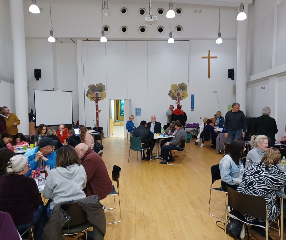 In the afternoon on Saturday members of the church went out with Bishop Martyn and his team onto the streets of the estate and knocked on doors to chat with local people. The church team offered greetings from the church and asked for prayer requests. That evening church members gathered again at the church, this bringing along their friends, for a quiz which was topped off by a short talk from Bishop Martyn.