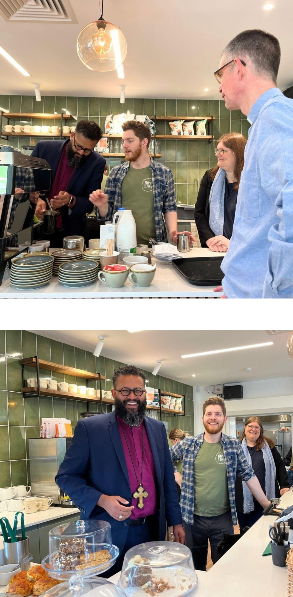 Bishop Saju recently visited Café Fifty Five, meeting Revd Rob and the team, including café manager Josh Shirtcliffe and Lizzie Berry, Schools and Community Outreach Minister.