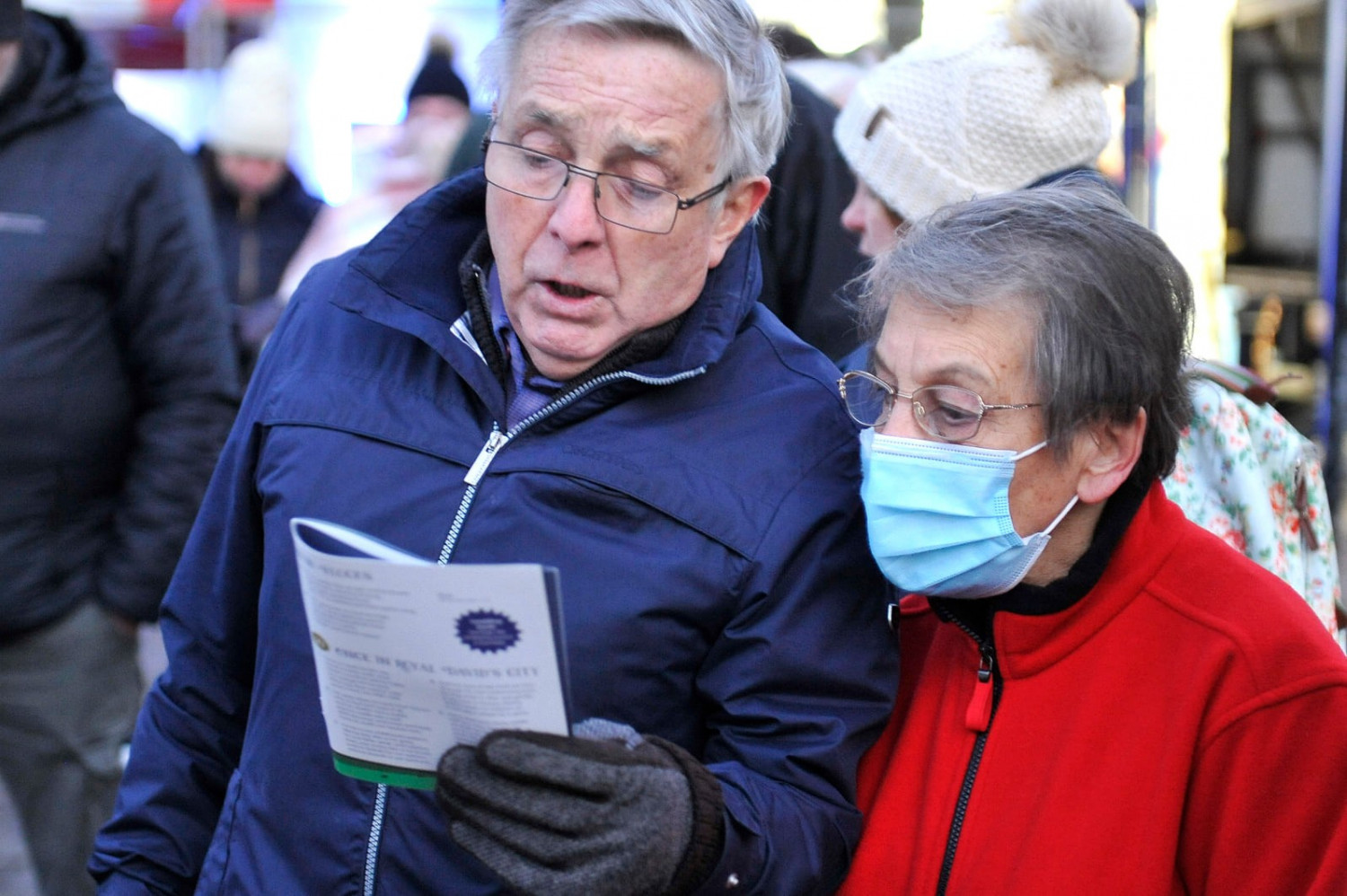 About 150 gathered (on the cold but festive afternoon) to sing carols and hear the Christmas story from Luke’s gospel. Simon Wearn (Holy Trinity) led the service, supported by the band and choir from St Mary’s Church, readers were drawn from across the Churches (St. John’s, the Mayor Ted Hollick, Hinckley Methodists), Andrew Mudharara (URC minister) led the prayers and Derek Marvin (Trinity Lane Chapel) spoke on the gift that God wants for Christmas – us (!) that we might welcome God in.