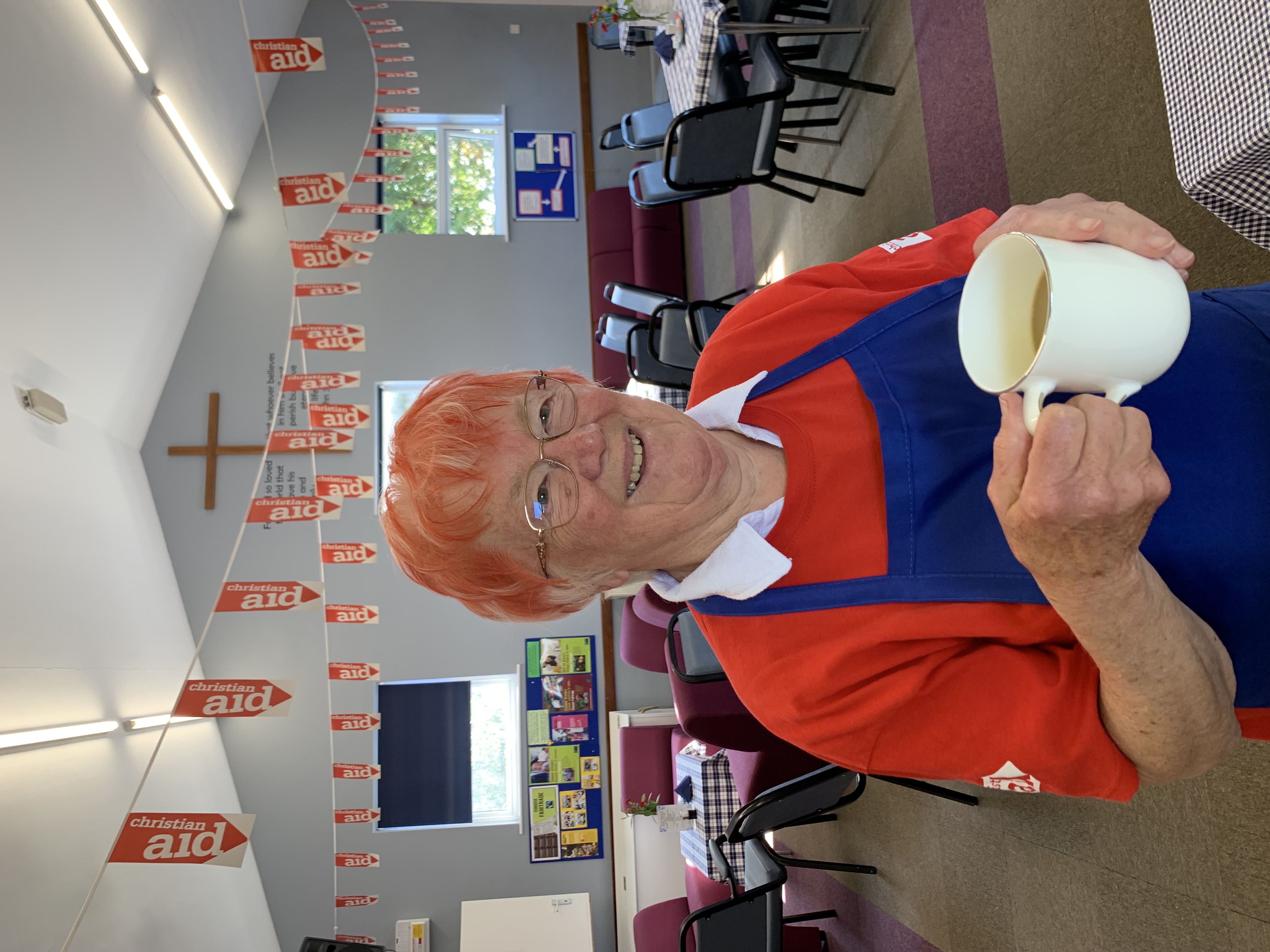 During Christian Aid Week (11-17 May), one member of the group, Christine Davies from St Philip and St James Church, decided to temporarily colour her usually white hair Christian Aid red for the cause.