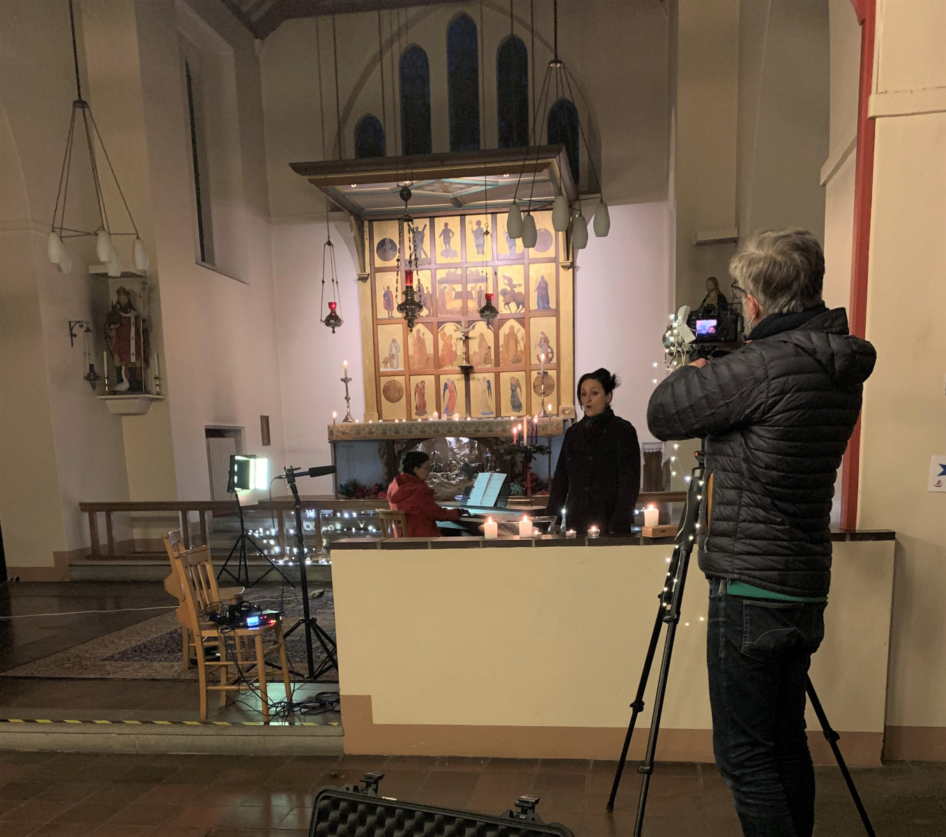 Alison leads the service, assisted by Rev Rob Leveritt, a former BBC sound recordist. Rob enjoyed being back briefly in the world of television production and said the experience reminded him of working on Songs of Praise.