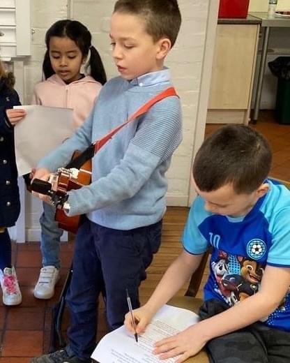 Every Explorers session begins with singing, during which the children enjoy playing instruments.