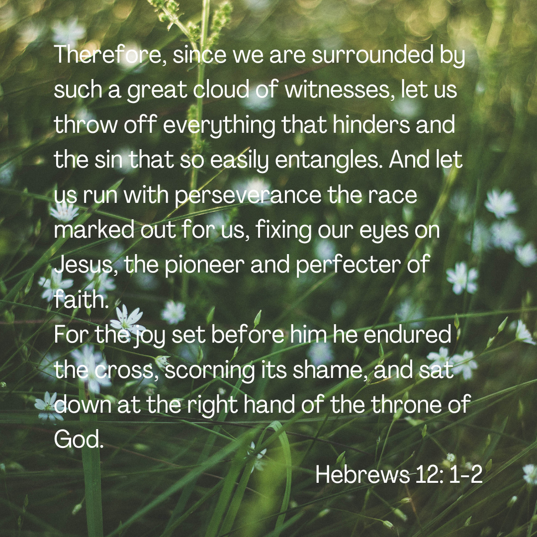 ‘May I run the race before me, strong and brave to face the foe, looking only unto Jesus, as I onward go.’