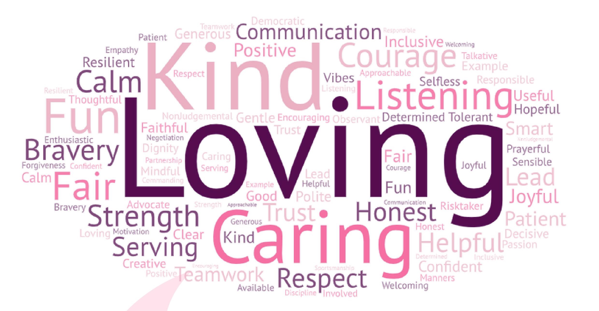 Whilst ‘loving’ came top of the list, other desirable qualities and behaviours appreciated by our young people included kindness, caring, courage, listening well, communicative, fair, fun, serving others and honesty.