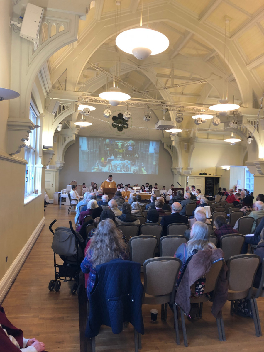 Bishop Martyn led the worship, alongside The Reverend Canon Alison Adams, in a service held in the Great Hall of St Martins House, Leicester.
