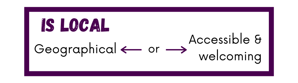 Is ‘local’ geographical, or accessible and welcoming? Local was always thought of geographically, but people also now feel something is local if they can access it easily, whether that is welcoming for a young family or easy to navigate and join for a person with disabilities.