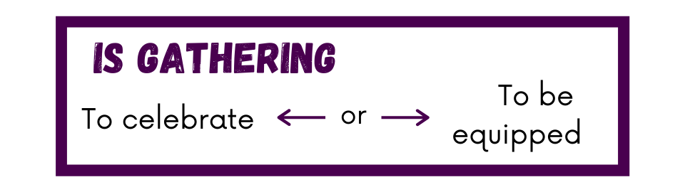 Do we ‘gather’ to celebrate, or to be equipped? Whether gathered around the Eucharist or worshipping in song together, we gather on Sunday with the people of God to enjoy God. Or, do we gather on Sunday to be equipped to be effective disciples in mission out in the world throughout the week?