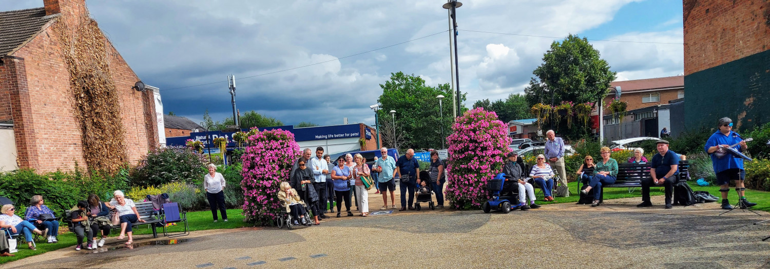 A ukulele band brought an upbeat, gospel flavour to the gathering, which saw more than 70 people sit outside among the flowers in the town’s Central Park Sundial Garden.