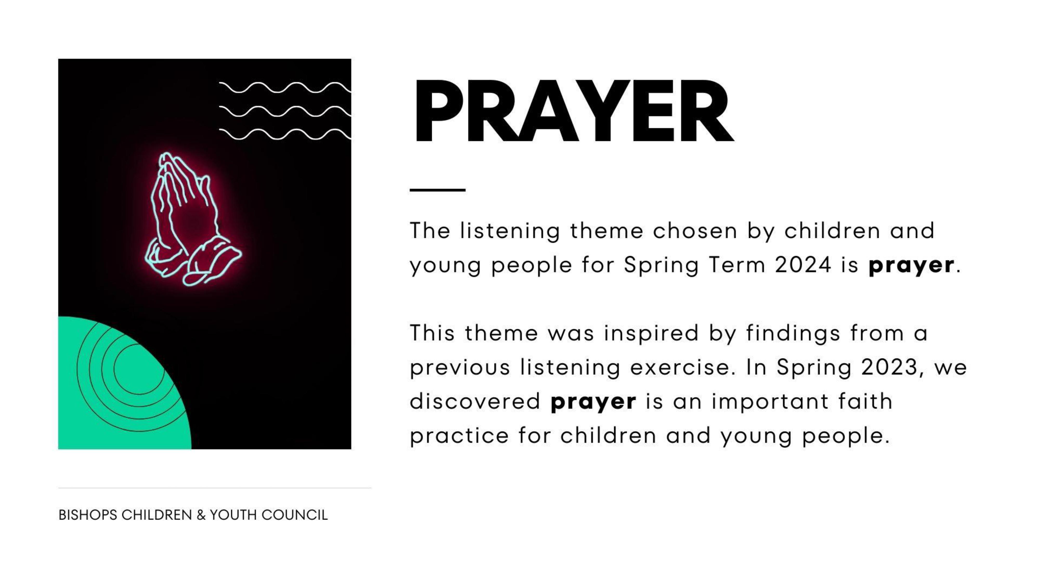 The Bishops’ Children & Youth Council have chosen prayer as the theme for their listening exercise for Spring 2024, and want to hear from as many young voices in the diocese as possible.