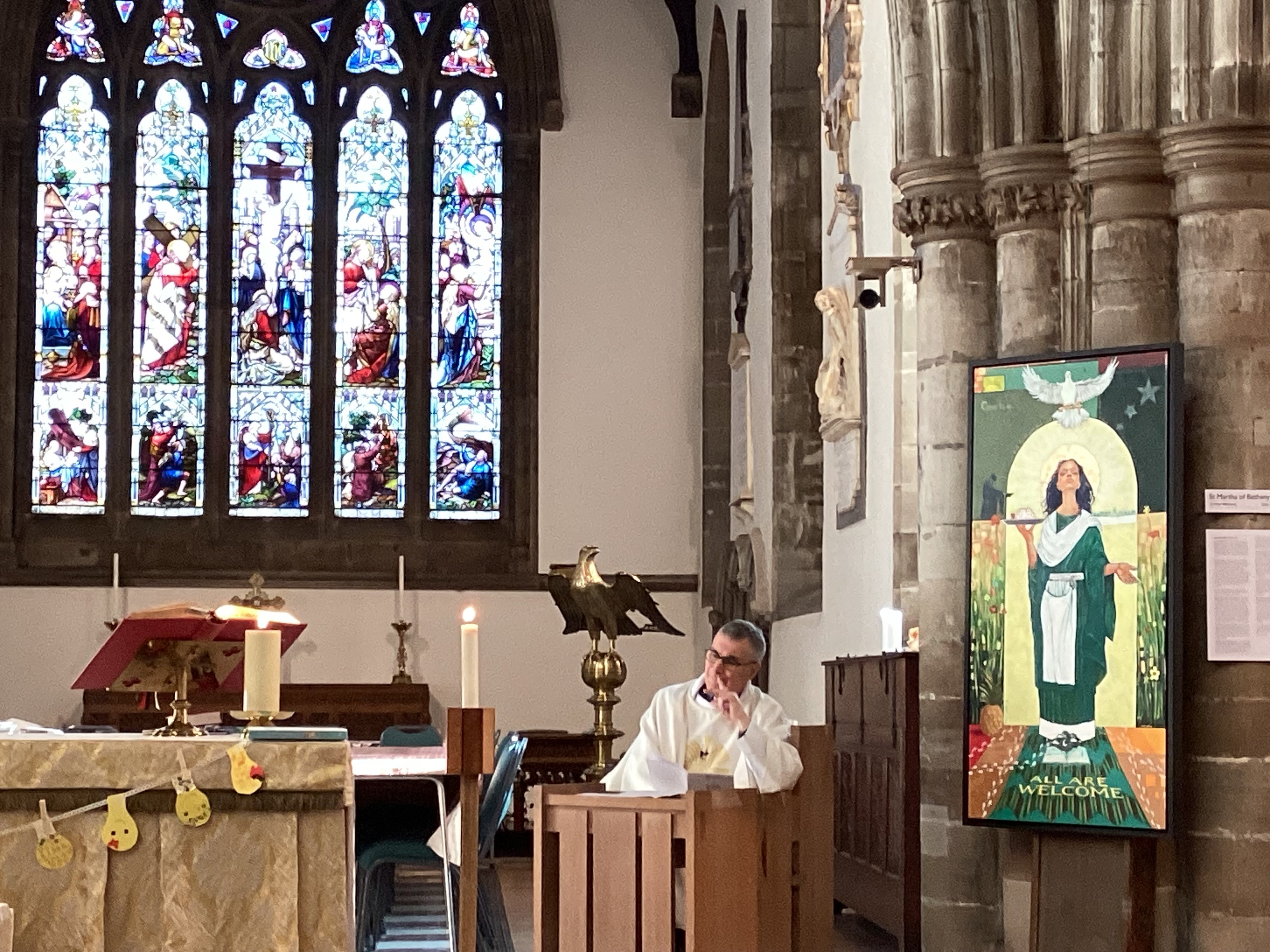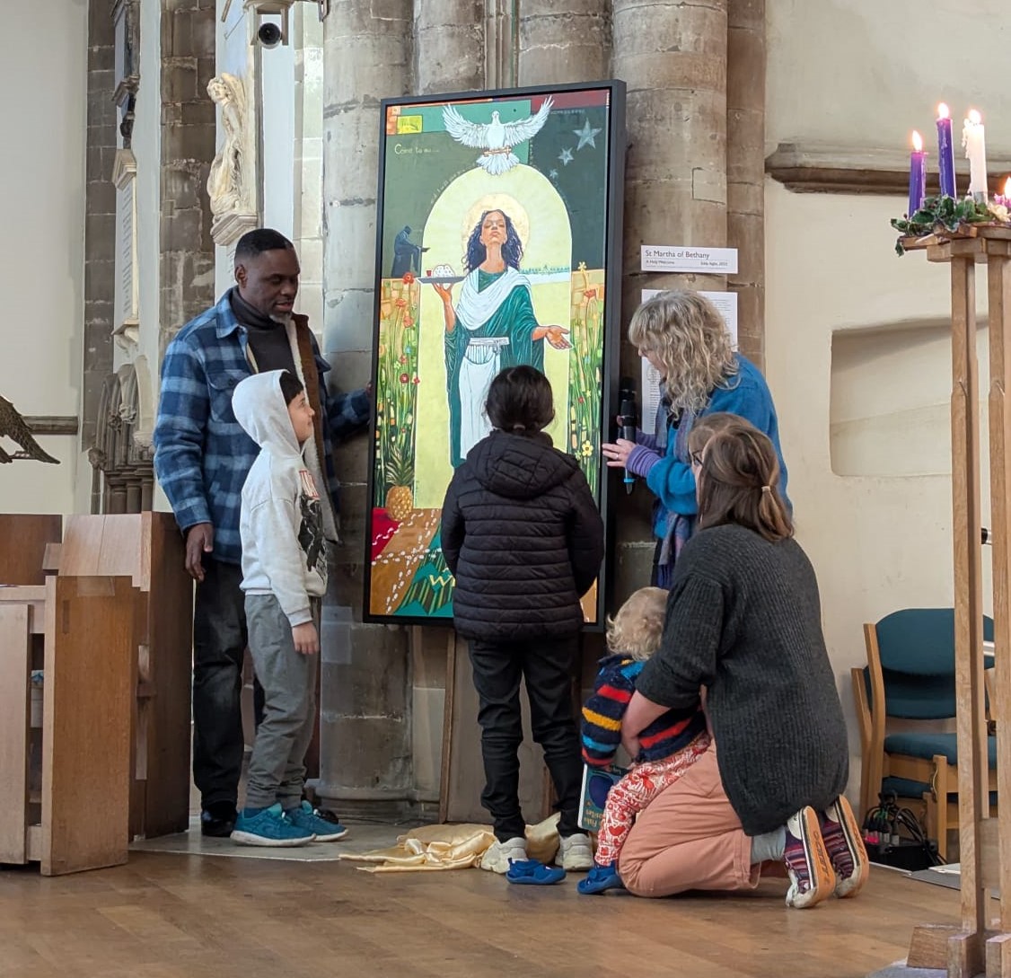 Artist Eddy Aigbe, along with the youngest members of the church, revealed the beautiful painting of St Martha of Bethany during a lively, all-age, intercultural worship service.