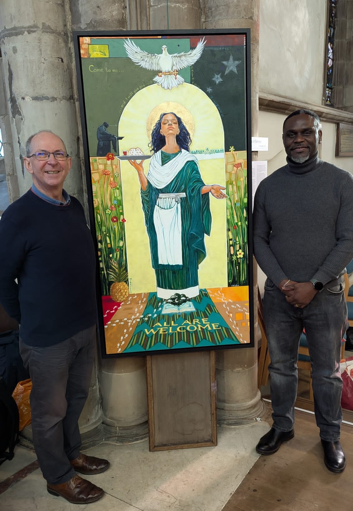 The painting, which has been given the subtitle of ‘A Holy Welcome’, is rich with symbolism, reflecting the values of the church, and is a significant start to the project which seeks to reflect and welcome the church’s diverse congregation, parish, and town.